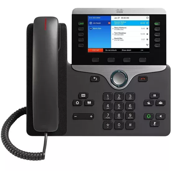 The Cisco CP-8851-K9 is a premium business-class VoIP desk phone from Cisco’s 8800 Series, designed for modern office environments. It features a high-resolution 5″ color display, HD wideband audio, and advanced connectivity options such as Bluetooth and USB.