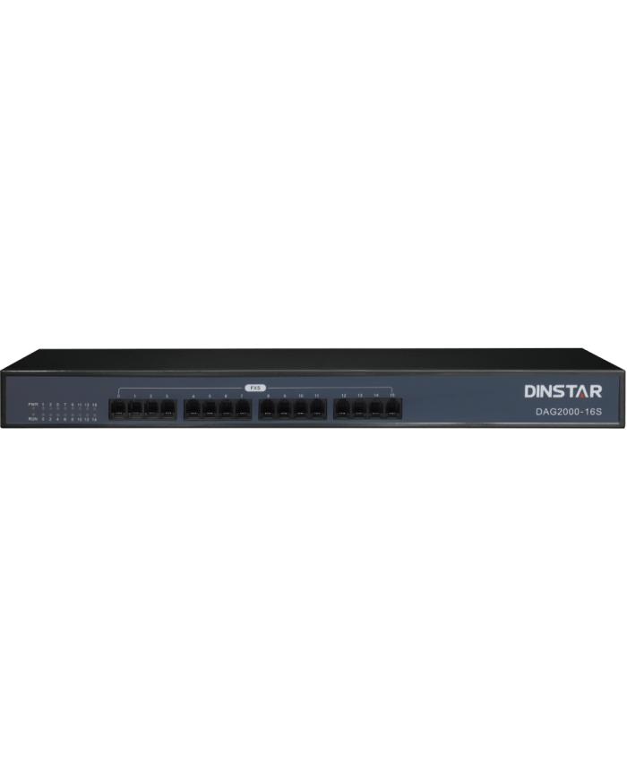 The Dinstar DAG2000-16S FXS is an 16-port FXS analog VoIP gateway designed to connect legacy analog phones, fax machines, and PBX extensions to modern IP-based telephony (VoIP/SIP) networks. It bridges traditional telephony devices with IP telephony systems like IP PBXs, softswitches, and SIP servers — making it ideal for businesses, SOHO, call centers, and multi-site deployments.