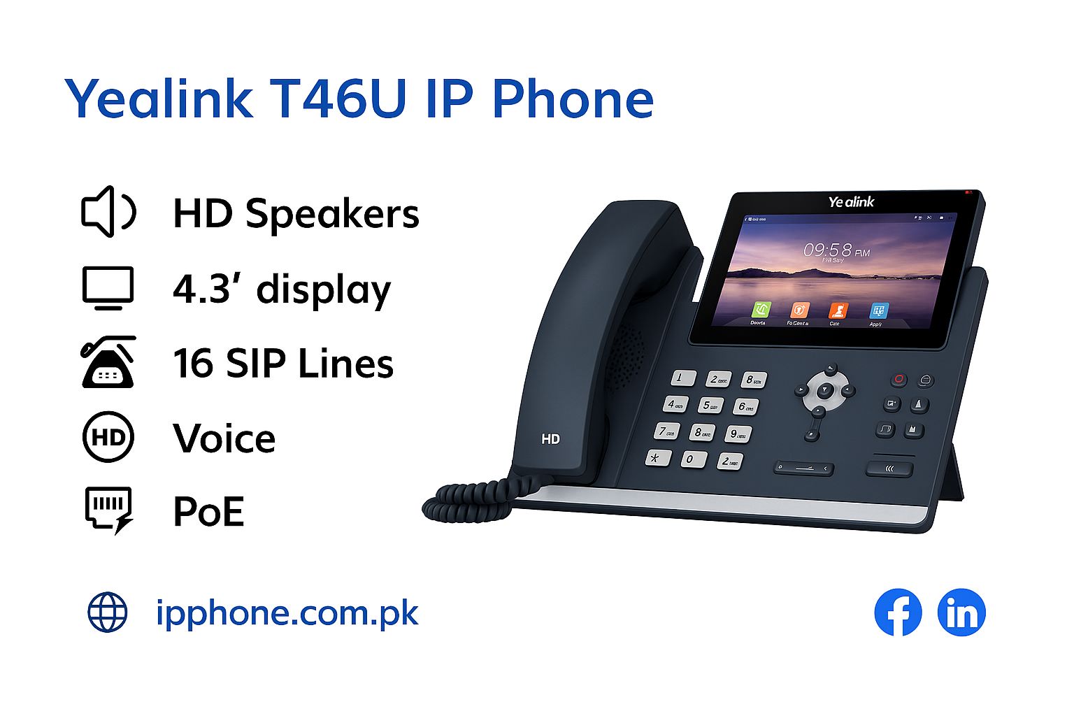 Yealink SIP T46U IP Phone Price in Pakistan is a professional Business IP Phone for Professional Communication, VoIP phone designed for business users, featuring HD voice, a color display and seamless SIP PBX integration. Ideal for small businesses, corporate offices and call centers in Pakistan, it ensures efficient call management, multi-line support, advanced features like PoE support, SIP compatibility, and crystal-clear audio, Yealink VoIP phones offer professional-grade communication at competitive prices.