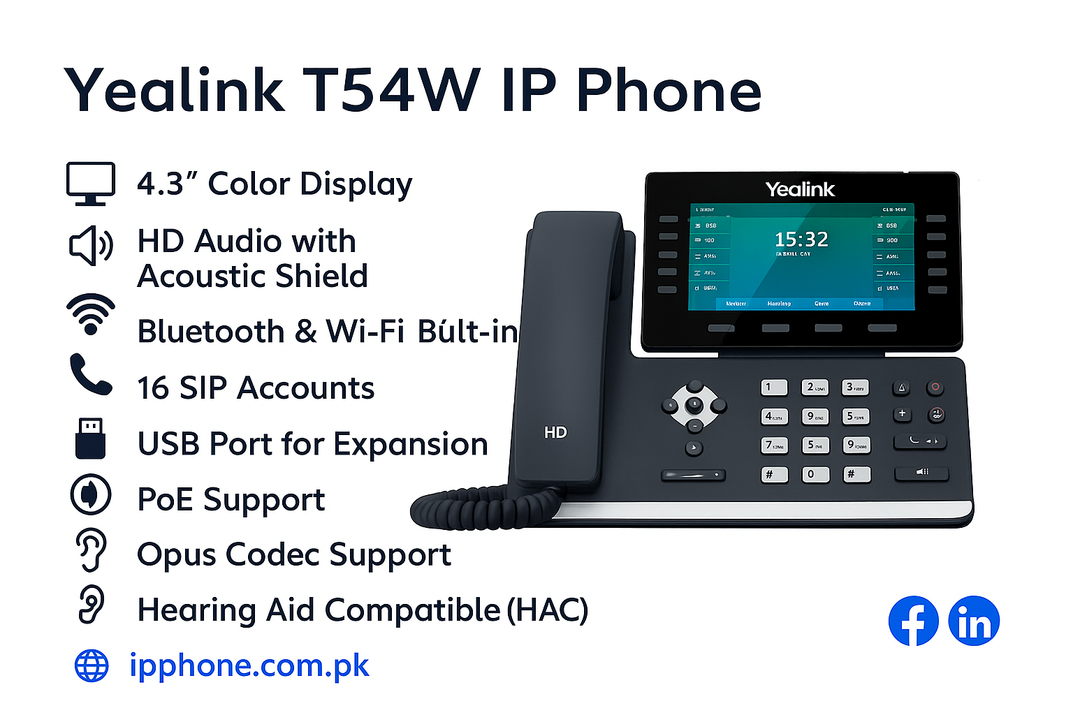 Contact us to buy Yealink SIP T54W Phones in Pakistan and upgrade your office communication today.