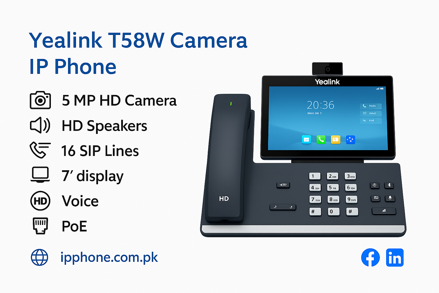 Yealink SIP T58W Pro IP Phone Price in Pakistan is a premium touchscreen SIP desk phone designed for modern offices and professional environments. With its intuitive interface, advanced VoIP features, and stable SIP connectivity, it enhances business communication while delivering high-quality audio. Ideal for enterprises, corporate offices, and call centers, it combines sleek design with reliable performance. This model supports Wi-Fi, HD voice, and PoE, making it a versatile solution for companies that need efficient and user-friendly desk phones for their teams.