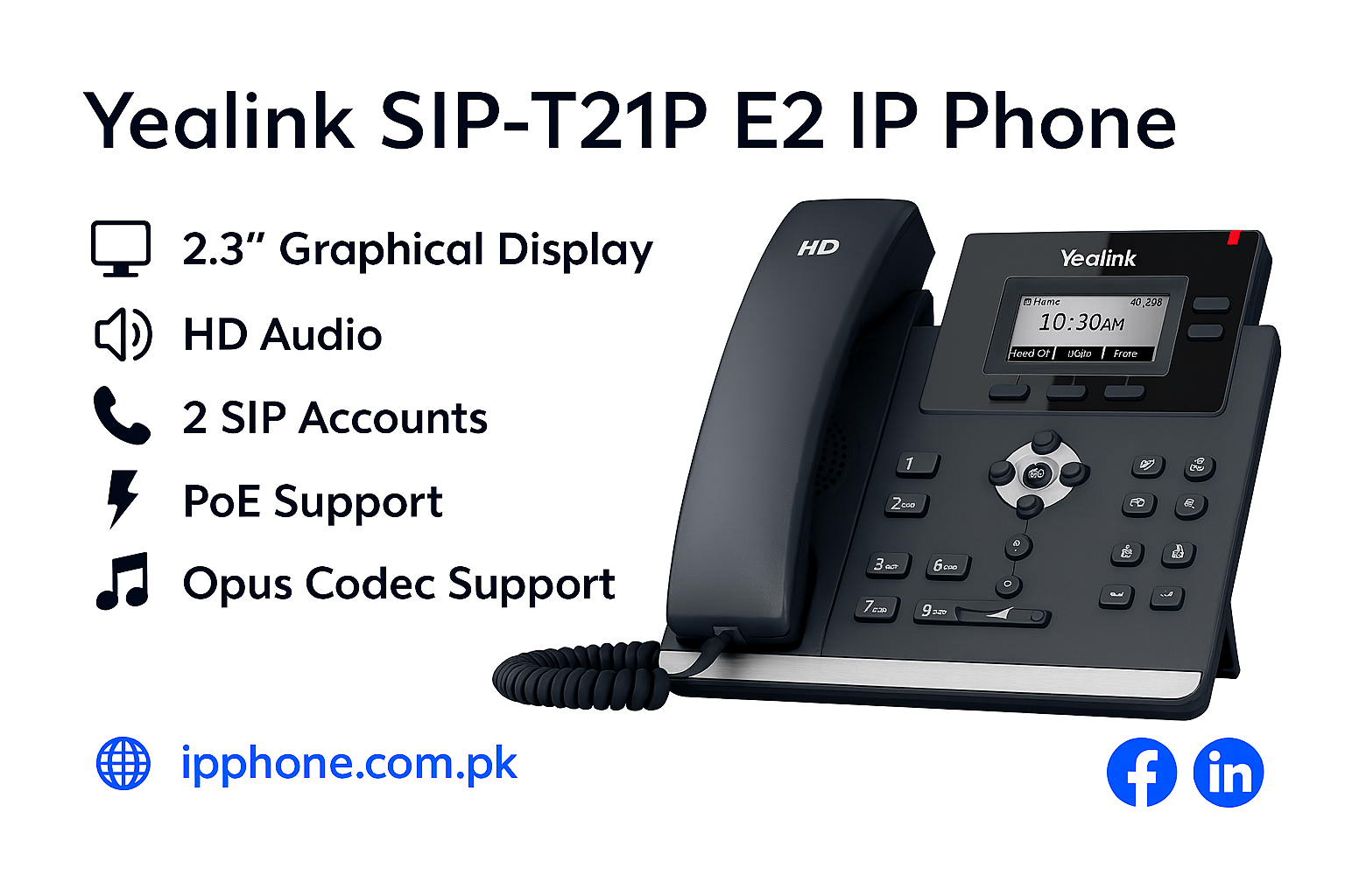 To know Yealink SIP T21P E2 Price in Pakistan that is a cost-effective, entry-level business IP phone ideal for everyday VoIP communication in small and medium-sized offices. Combining essential telephony features, HD voice quality, and flexible deployment options, Yealink SIP-T21P E2 model delivers reliable performance for reception desks, administrative users, and team environments where simplicity and efficiency are key.